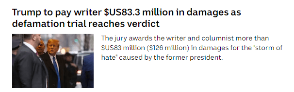 The American legal system is no different to ours. It favours the rich over the poor and with the US appeals process, Trump is likely to be as old as Joe Biden before any money changes hands… if it ever does.