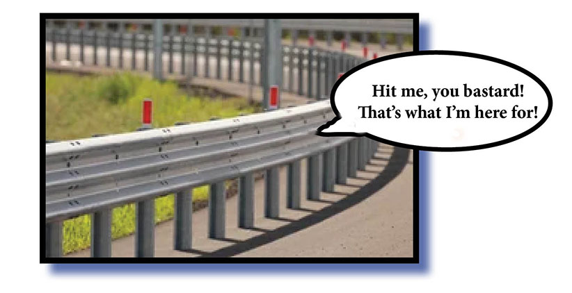 What the vehicle mentioned above did was to HIT that guardrail. HIT! Accurate and using fewer words. HIT! It’s not rocket surgery.