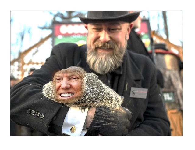 “It’s a beautiful shadow. I don’t know anyone or anything that has ever had a better shadow,” the groundhog declared, adding that it indicated the advent of a four-year period which would see “America made great again, sleepy senile Joe Biden in jail along with lots of judges and prosecutors, and term limits for US presidents scrapped”.