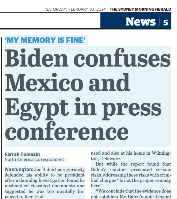 Another classic example was its reporting recently when US president Joe Biden “appeared” to mix up the presidents of Egypt and Mexico. Biden did no such thing. He mixed them up, as the SMH correctly pointed out on Saturday.