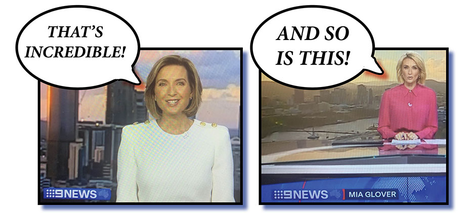 ….. before we make this simple plea to Nine News and all other networks, if the truth be known: if you want to be respected as a sober, serious, professional news media platform, stop touting stories with the over-the-top, totally unwarranted, totally inaccurate “incredible” tag! Leave that description for those writing promos for the various stations’ reality TV shows. MAFS, etc, etc. You know: the clearly fake, made-up stuff; the exact opposite of what news is supposed to be.