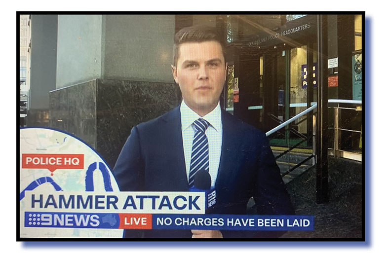 Bailey Kenzie, reporting about a Logan father of two who was allegedly attacked with a hammer by his neighbour over a van parking dispute, had “this afternoon been discharged from Logan Hospital but his injuries are still incredibly fresh”.