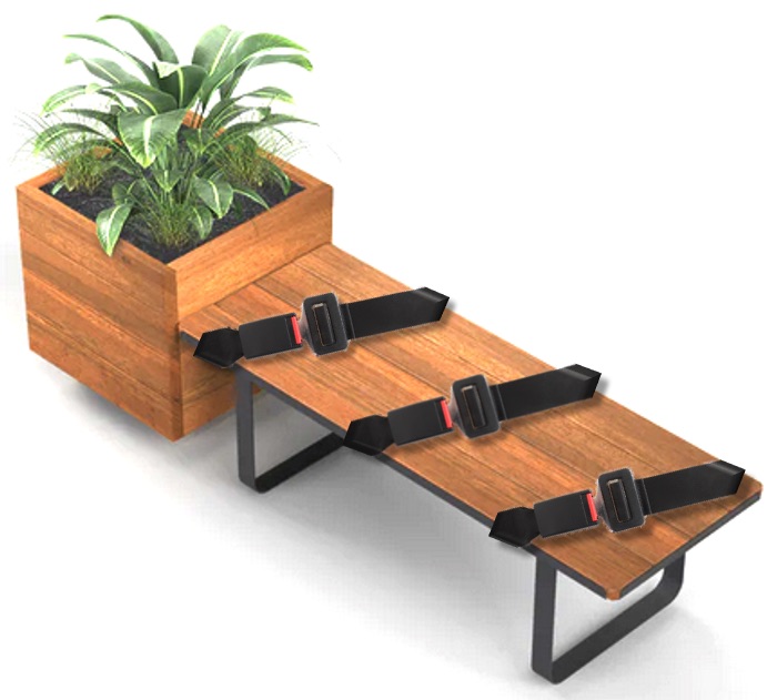 Mayors of five councils have announced a joint program to replace all benches in public spaces within their boundaries with bespoke models featuring built-in seat belts. (main picture)