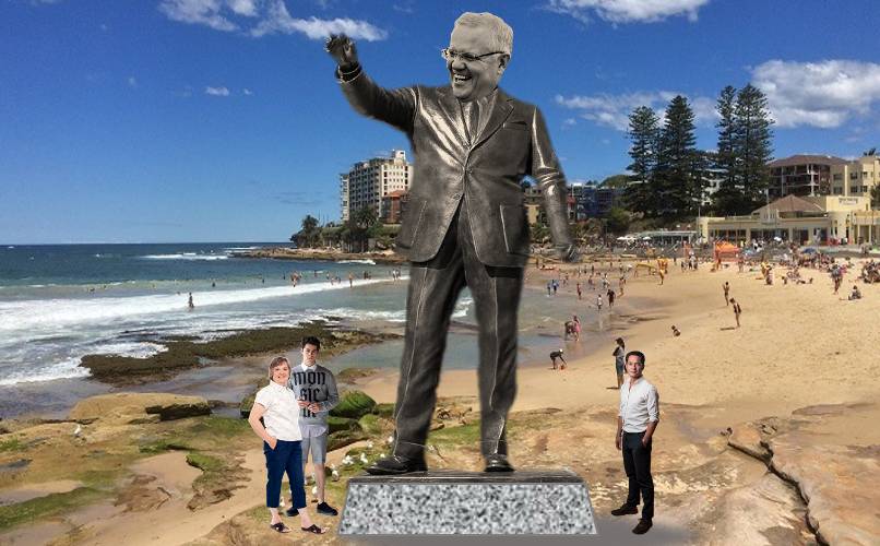 “People do tend to make big donations once they are told that my plan has always been to build a big statue of Scott Morrison for the sole purpose of inviting everyone who donates down to Cronulla Beach to help tear it down, bash the bejesus out of it, set it alight, then push the fucker out to sea and sink it.”