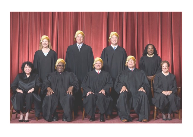 “Only I can stop him, but I need to Supreme Court to help me do it. They need to step up or else I’ll say to all of them: You’re fired!” he yelled, citing his trademark line from his former TV show The Apprentice which prompted the audience to break into lengthy applause, chants of “USA! USA! USA!” and banjo playing.
