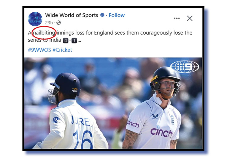 Okay, maybe we’re being unfair. Maybe it was nailbiting because the Test was very late into its fifth and final day and “nailbiting” was totally warranted as the crowd feared the Pommy tailenders could hold out for a totally undeserved draw?