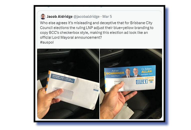 Not quite. These two fraudsters wanted the Northgate ward recipients of this letter to think it was from the Brisbane City Council. That’s been at the heart of the two-decades long theft of the council’s IP. Subliminally or otherwise, how many residents now believe that the BCC endorses LNP Queensland as its political party of choice?