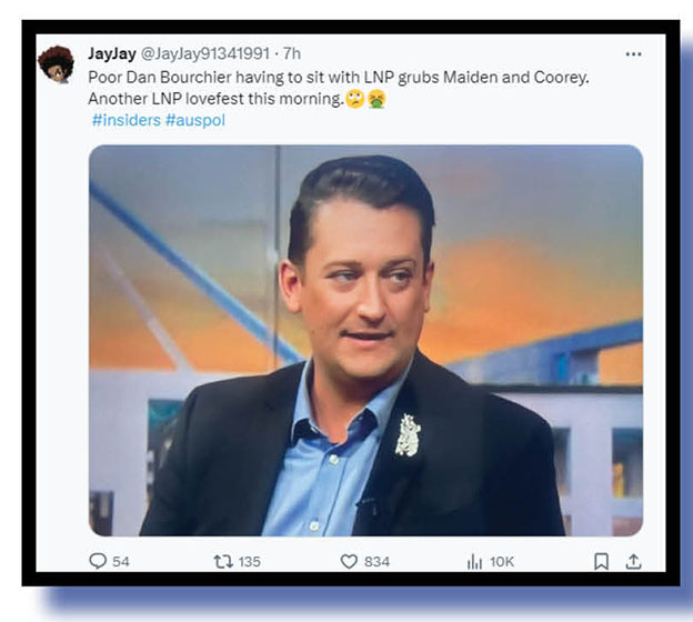 … while JayJay and Sahar Adatia both felt sorry for Dan Bourchier on that Insiders program…