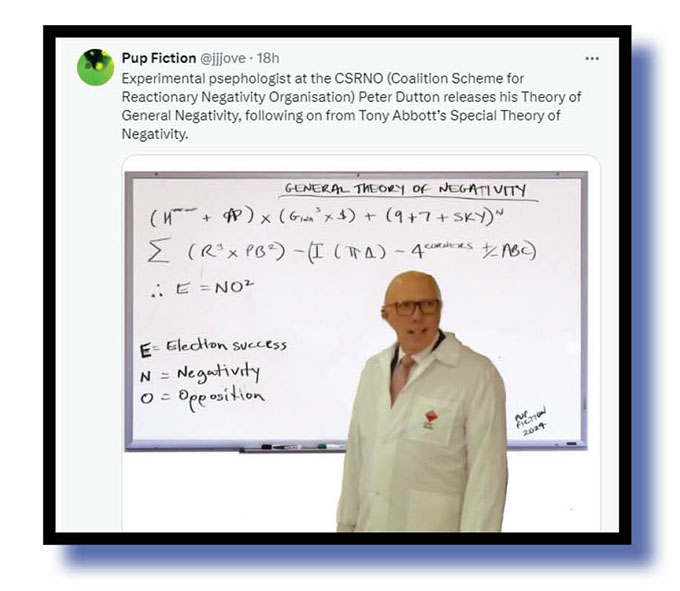 Our Excrement-of-the-Week judges couldn’t go past the effort put in by Pup Fiction (above and below) to take the mickey out of Peter Dutton as he exchanged blows with CSIRO on who had a better handle on nuclear theory!