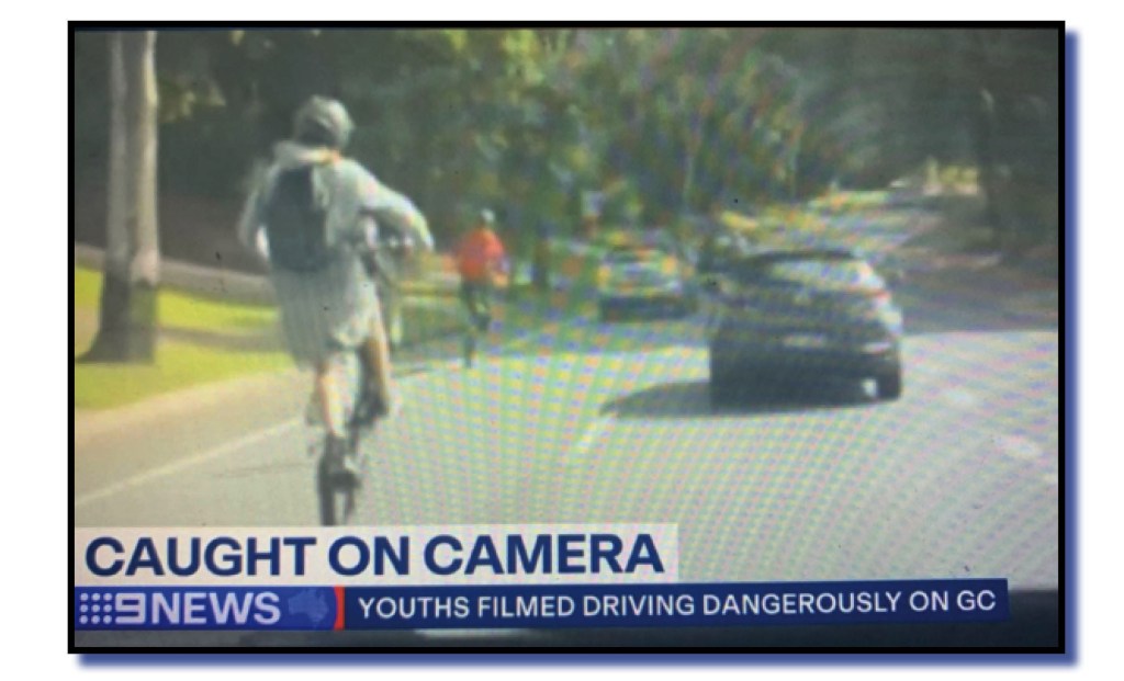 Poor Melissa Downes (pictured at top) wove in and out of the truth of the matter as she introduced the yarn about how “two teens on electric dirt bikes had been caught on camera riding erratically through traffic”.