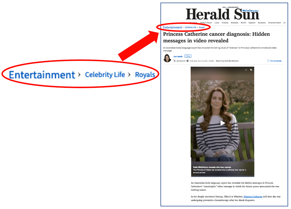 Finally, News Crap Australia gave blanket coverage through its online sites on Saturday following the overnight announcement by the Princess of Wales about her cancer diagnosis and treatment.