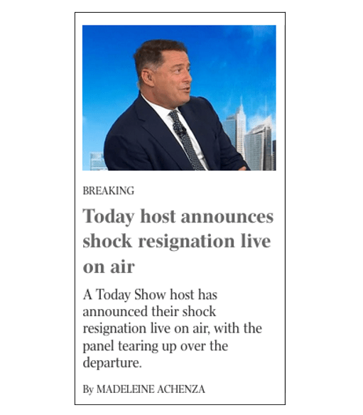 Clearly the intention is to suggest to readers that Karl Stefanovic has quit his overpaid job at the Nine Network’s brekkie show.