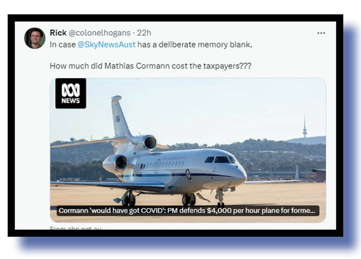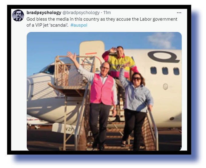 bradpsychology had a go at Australia’s mainstream mediocre generally and LNP hypocrisy over the use of jets. Sorry, but we’ve misplaced another X post reminding us all of the government jet that helped Mathias Cormann in his overseas job hunt!