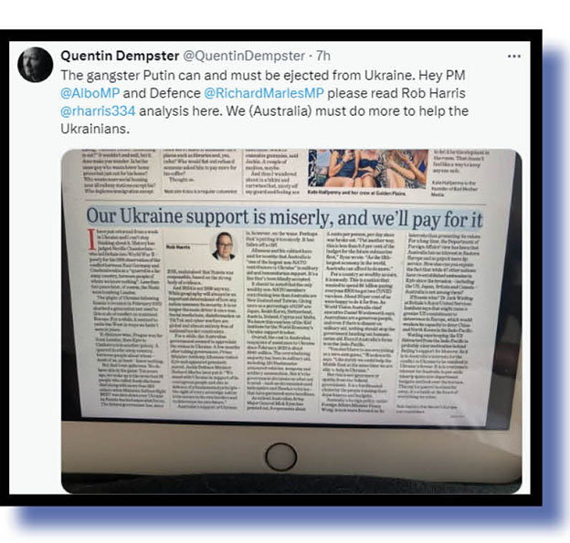 Okay, let’s now cover an eclectic mix of X opinions, starting with Quentin Dempster on Ukraine.