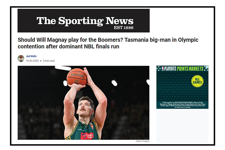 And its appearance is all due to a three-minute read posted on April 10 by writer Jed Wells about the likelihood of basketballer Tasmanian JackJumpers big man Will Magnay making this year’s Olympics.