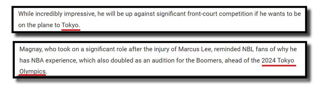 The compilers of Mediocre Bytes don’t know a helluva lot about the NBL but we know enough to clearly state: if Magnay is selected in the final Boomers squad and travels to Tokyo there’s no way in the world he’ll be playing for them.
