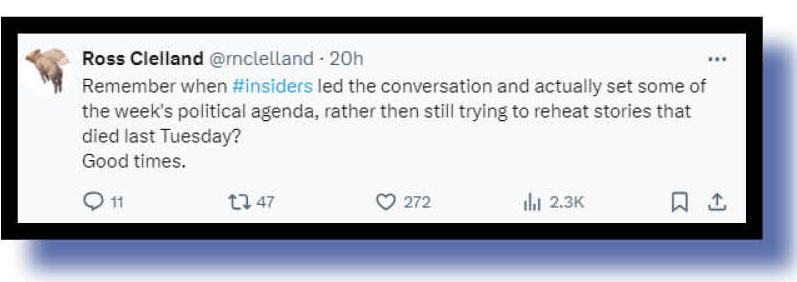The Bug‘s Xcretas-of-the-Week judges never wonder why the weekly ABC Insiders program gets so much xcrement dumped on it in this weekly column.