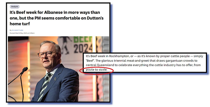 But this column has no idea why the ABC’s Annabel Crabb took such an interest in the things (artist’s impression at top) as evidenced by the long colour piece she penned for Aunty and posted at 5am on Wednesday, especially the intro as shown below.