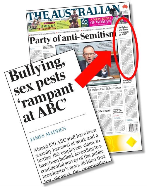 “But it was left to Mr Miller to redirect Mr Henderson’s attention to another front-page item about an internal survey on alleged sexual harassment incidents within the ABC. (below)