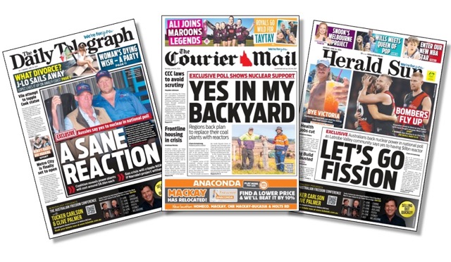 The News stories – as opposed to news stories – carried the headline “Aussies back a nuclear age”, but based its claim on responses to one benign question asking if nuclear power had a place in the nation’s energy mix.