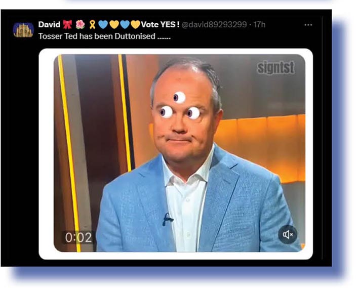 With all the federal Opposition’s outrage over nuclear three-eyed memes – blindly supported by too many in the mainstream mediocre – our Xcrement-of-the-Week judges couldn’t go past the very simple but effective observation by Anthony Element (above and below).