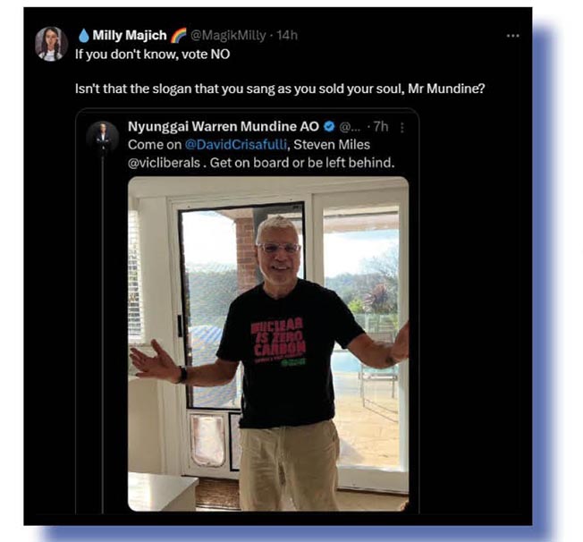 … while Milly Majich reminded us that some other great No! campaigners from the Voice referendum also used the “If you don’t know, vote No!” to good effect amongst morons who buy that type of crap in their mindless ignorance.