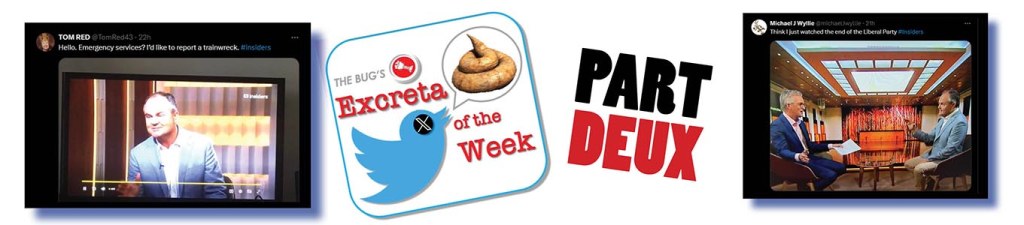 Shit, sorry! We promised during the first look at our Xcrements-of-the-Week yesterday that we’d give those childish three-eyed mutant memes a break. It’s time for a serious debate on the Opposition’s plans, not this sort of puerile, infantile, sideline rubbish. Right?