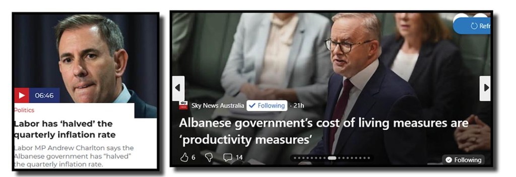 They refer to the examples (shown at top) with Labor federal parliamentarians getting their opportunity to put a leftish spin on an uptick in inflation and how, presumably, Labor’s looming income tax cuts could be seen as productivity measures.