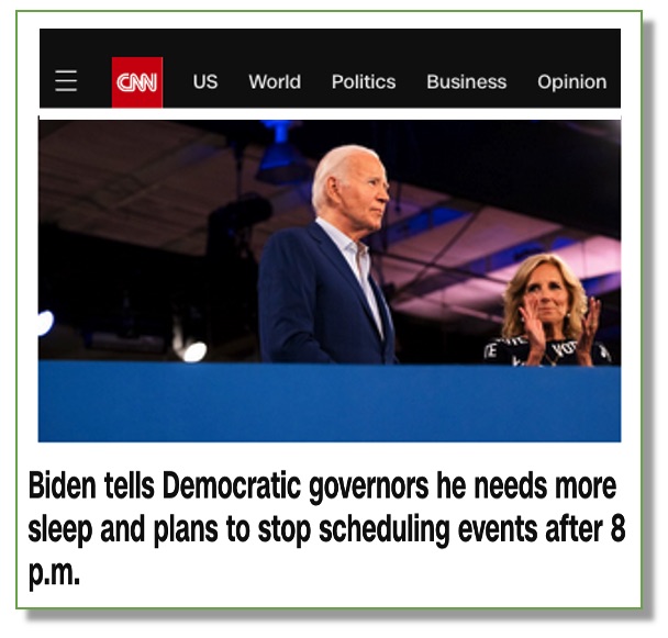 One governor who did not wish to be identified said the group was surprised at first at a suggestion from Mr Biden that he would henceforth improve his day-to-day performance by banning events after 8.00 pm and getting more sleep. (below)