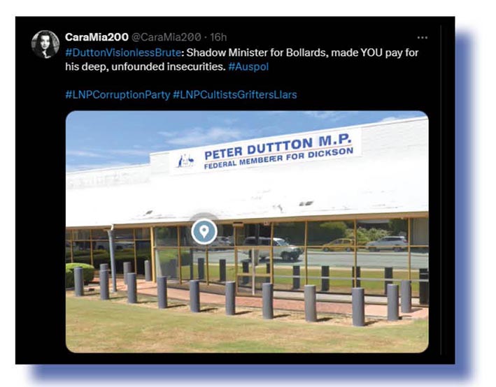 Typical of those was the entry from CaraMia200 (at top and below) whose nice little graphic told us so much about how much-loved Peter Dutton must be in his near-Brisbane electorate of Dickson. Happy-claps all round for the dear chap!