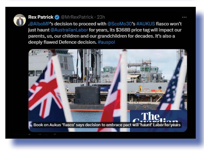 … and finally on other international political issues, Rex Patrick on AUKUS and Mike Carlton, having a go at that “whingeing arsehole” Simon Birmingham over Anthony Albanese’s decision not to attend the NATO forum in Washington, sparing himself from endless “Airbus Albo” taunts from Sky LNPNews Australia, Newscorpse in general and sadly too many other media outlets as well.