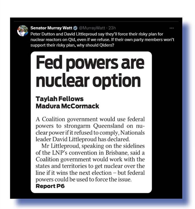 Senator Murray Watt on Dutton and Co’s brainfart idea for two nuclear power plants in Queensland….