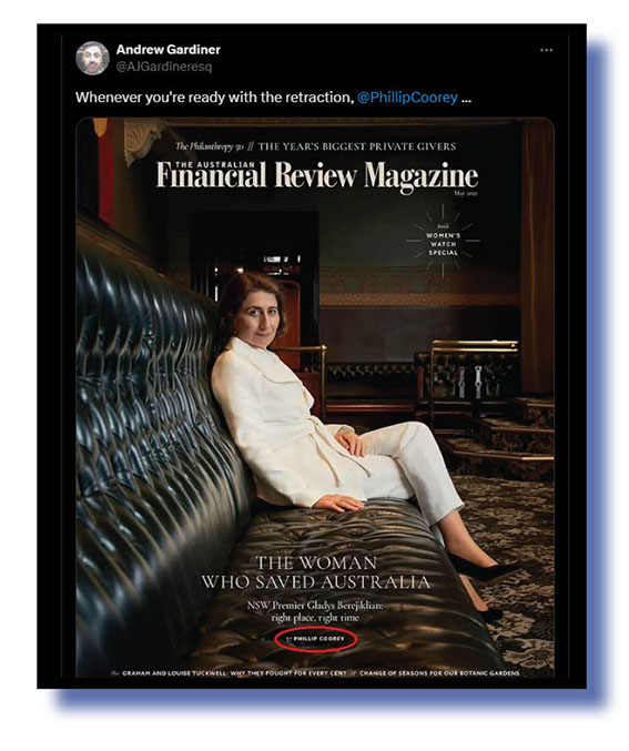 Before we leave Gladys, Andrew Gardiner is still waiting for an apology and retraction from Phillip Coorey…