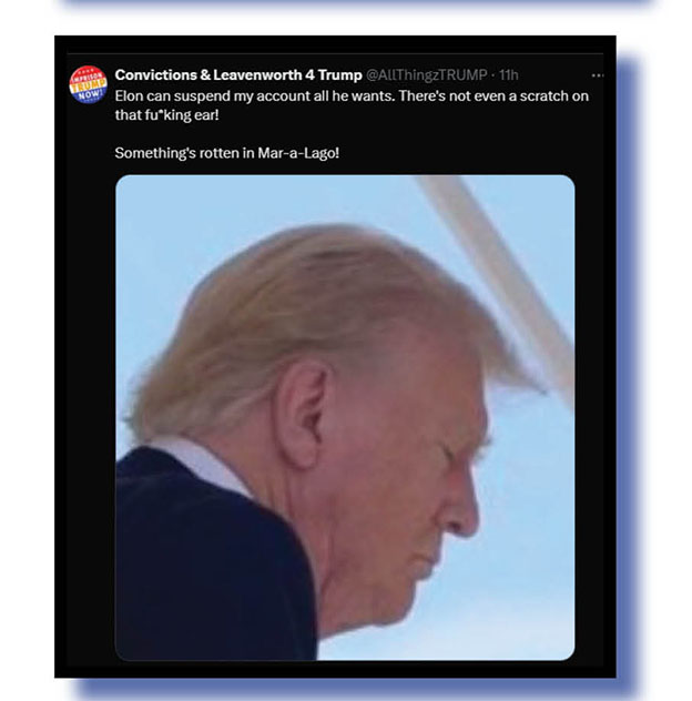 Staying with the US elections, Peter FitzSimons spotlighted the only, senile, old man left in the race, while Convictions and Leavenworth 4 Trump pointed to the poor old bloke’s remarkable ear recovery.