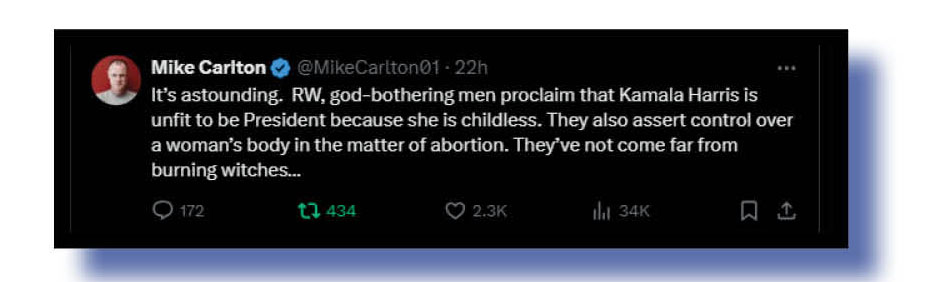 Staying on that general theme – and the pathetic jibes being levelled at childless Kamala Harris by various Republicans – here’s Mike Carlton.
