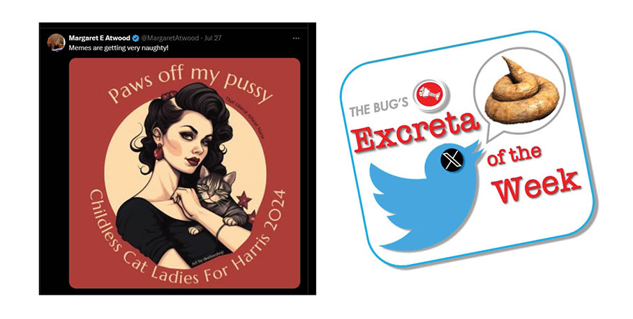 Those who vie for our ultimate Xcrement-of-the-Week honour need look no further for inspiration than this week’s winner, Margaret E Atwood (above and below).