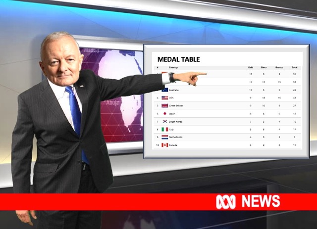 Mr Green this morning told ABC TV viewers (main picture) that the USA had an unassailable lead on the medal tally board, even though Australia appeared to be outranking it.