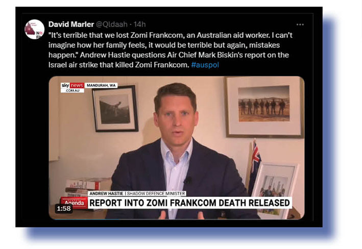 Ah, yes, Mr Hastie. Mistakes do happen. Harmless, silly mistakes and there’s nothing to see here really. We do miss Zomi but war, after all, is hell and it was her decision to work in such a dangerous zone. Talk about doing your best to secure the next free junket to Israel, if Dutton is prepared to give up his seat, that is. And to be fair, Simon Birmingham must be due soon too.