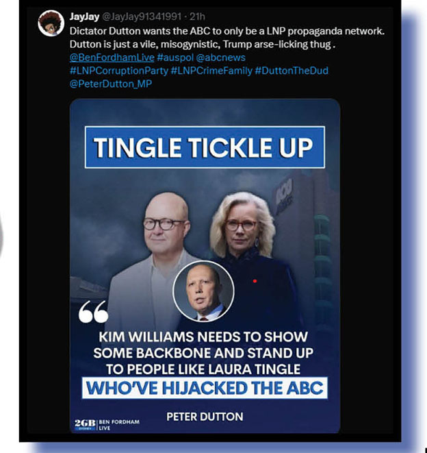 Let’s now rope in that dreadful Australian mainstream mediocre, but also with a Peter Dutton tinge… or should that be smear.