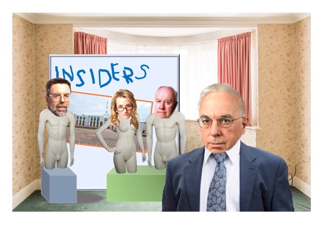 “The remark didn’t make sense to me until we entered the loungeroom and I saw a makeshift version of the ABC Insiders set with a ‘panel’ of mannequins bearing the faces of three of Gerard’s fellow Righters from The Oz. (main picture)
