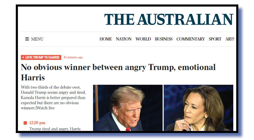 As one of our judges sarcastically pointed out: “A high school debater or adjudicator would have given that debate to Kamala Harris by a country mile on every conceivable scoring point; presentation, content, rebuttal … the whole goddammed works!”