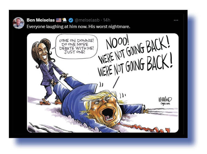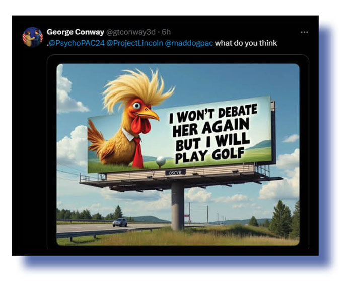 Plenty of topics to focus what’s left of the minds of our Xcrement-of-the-Week judges but one that particularly tickled their fancies was the excuse Donald Trump came up with for saying no to a second debate with Kamala Harris.