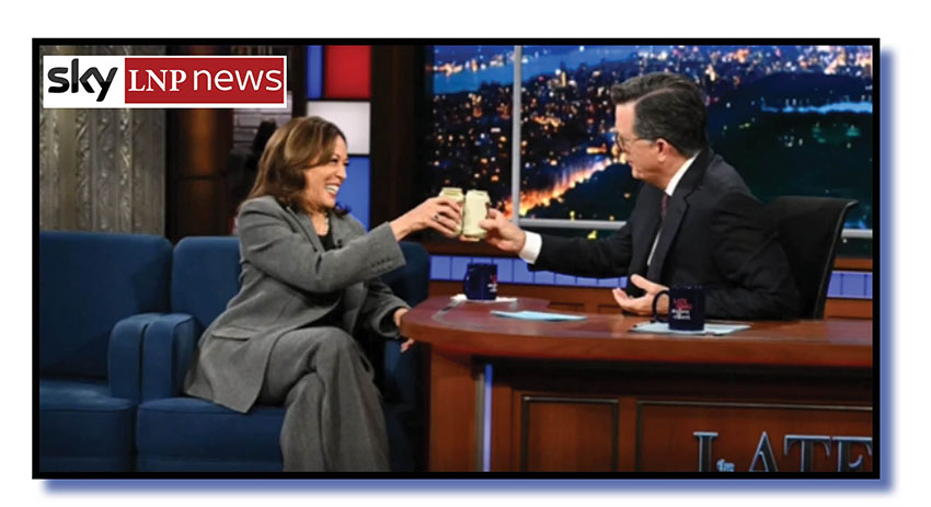 In his Sky LNPNews segment, Morrow roasts Harris for what he says was an “unbelievably cringeworthy” exchange involving beer and Stephen Colbert. He’s referring to the offer by Colbert to crack open a few cans with Harris, after which they are both seen on screen taking a sip.