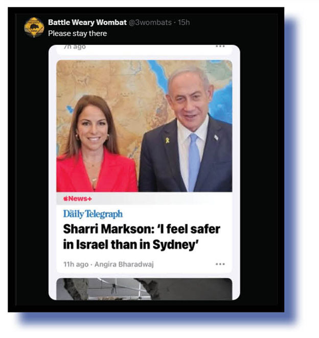 Battle Weary Wombat had a very good idea as to where Sharri Markson should now live permanently, while stranger pointed to a difference of opinion on the aforementioned Insiders couch.
