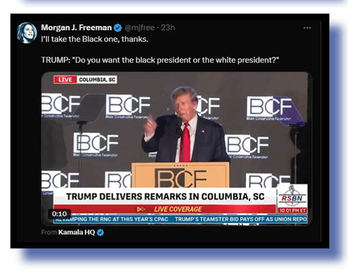 Trump’s recent question posed at the National Association of Black Journalists, asking if they wanted a black or white president, continues to reverberate, with Morgan J. Freeman and blakandblack taking aim.