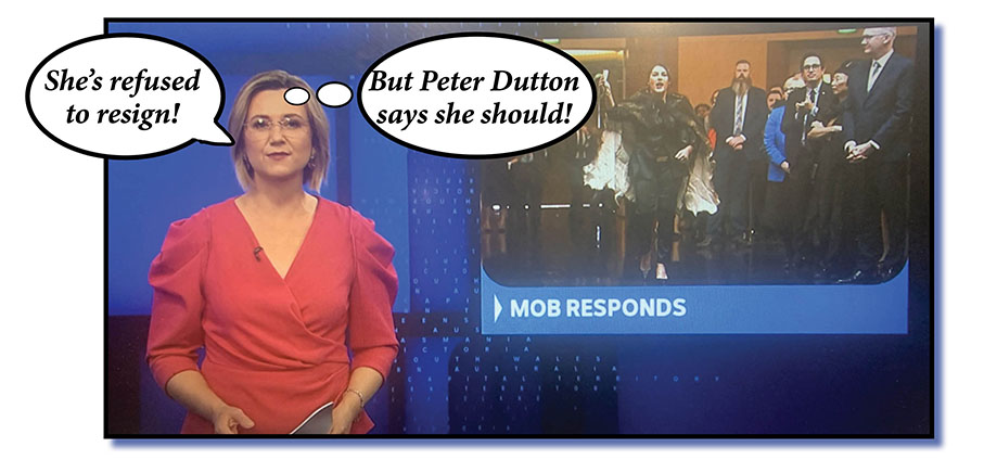 That segment could easily have been kicked off with the differing reactions from the mob to Senator Thorpe’s protest. Leading with her “refusal to resign” is pretty damned stupid and leaves Aunty open to fresh criticism that it really does think that what Peter Dutton has to say on just about any issue is not only always worthy of extended and sometimes favoured coverage but that the likes of Senator Thorpe should at the very least heed his career recommendations.