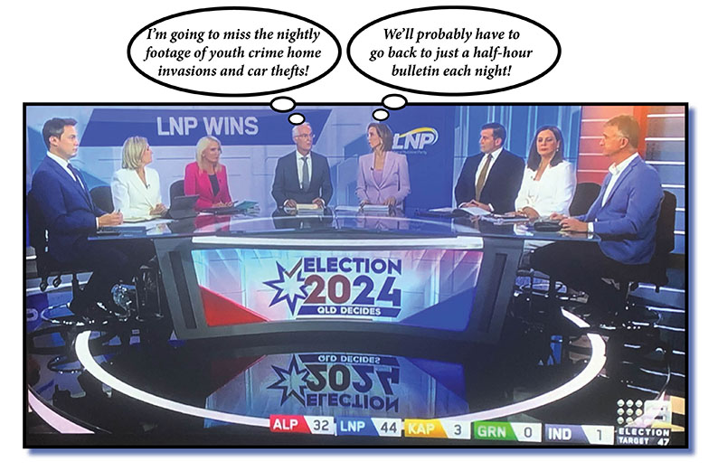 That’s the question the bitter, washed-up, old hacks who compile this column asked of themselves after toggling between the extensive coverage on the Queensland state election from 6pm by the ABC and Channel 9 Brisbane.
