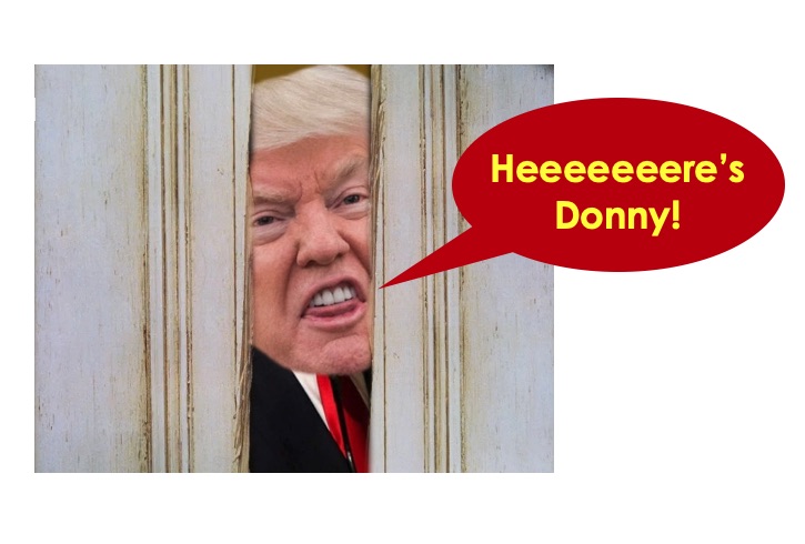 Mr Trump arrived unannounced at the West Wing of the White House today carrying a large lumberjack’s axe.