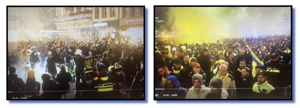 “Young men clad in black roamed the streets on foot and on scooters targeting the Israeli supporters.” Five end up in hospital after “groups of young men scoured the Dutch capital hunting down Israeli soccer fans. Many are kicked and beaten before their attackers flee.”