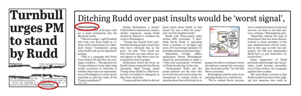 We’ve taken the mickey out of both mastheads now for a very long time over their total commitment to absurd inconsistency as to what to call the real front page inside the fake front page whenever there’s an advertising wraparound. Like a mad woman’s breakfast (can we still say that in the 21stC, me-too age?) the powers-that-be at these papers are all over the place, seemingly alternating between numbering that real front page as page one or page three.